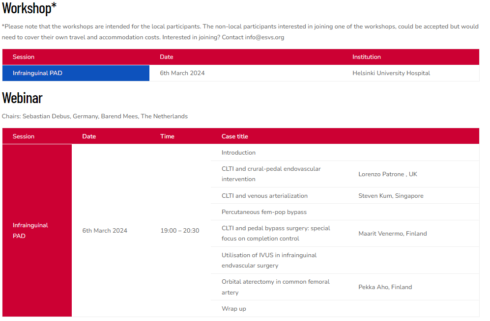 After 5 successful editions, the ESVS Masterclass is back in 2024 and will cover mainly PAD and Aortic topic.
