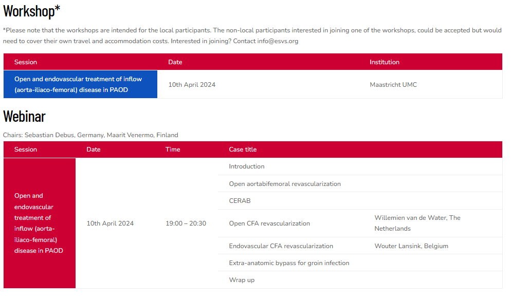 After 5 successful editions, the ESVS Masterclass is back in 2024 and will cover mainly PAD and Aortic topic.