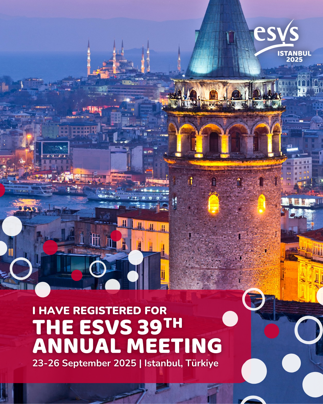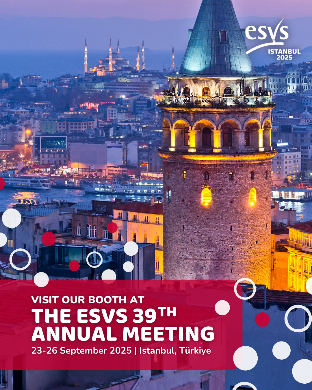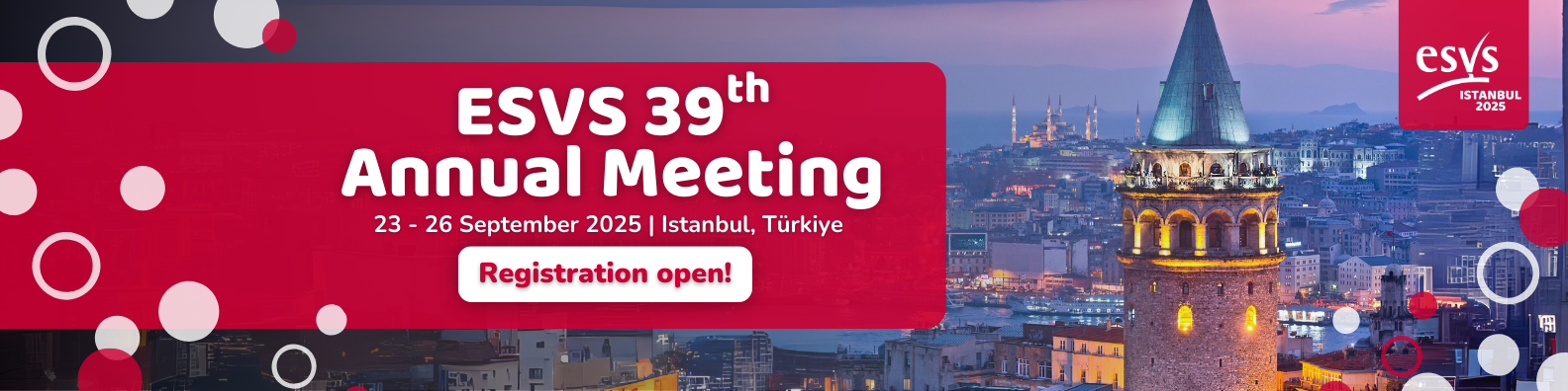 The ESVS will host its 39th Annual Meeting from 23-26 September 2025 in Istanbul, Türkiye. The meeting brings together world-renowned vascular surgeons, researchers, and practitioners for four days of networking, learning, and discovery.